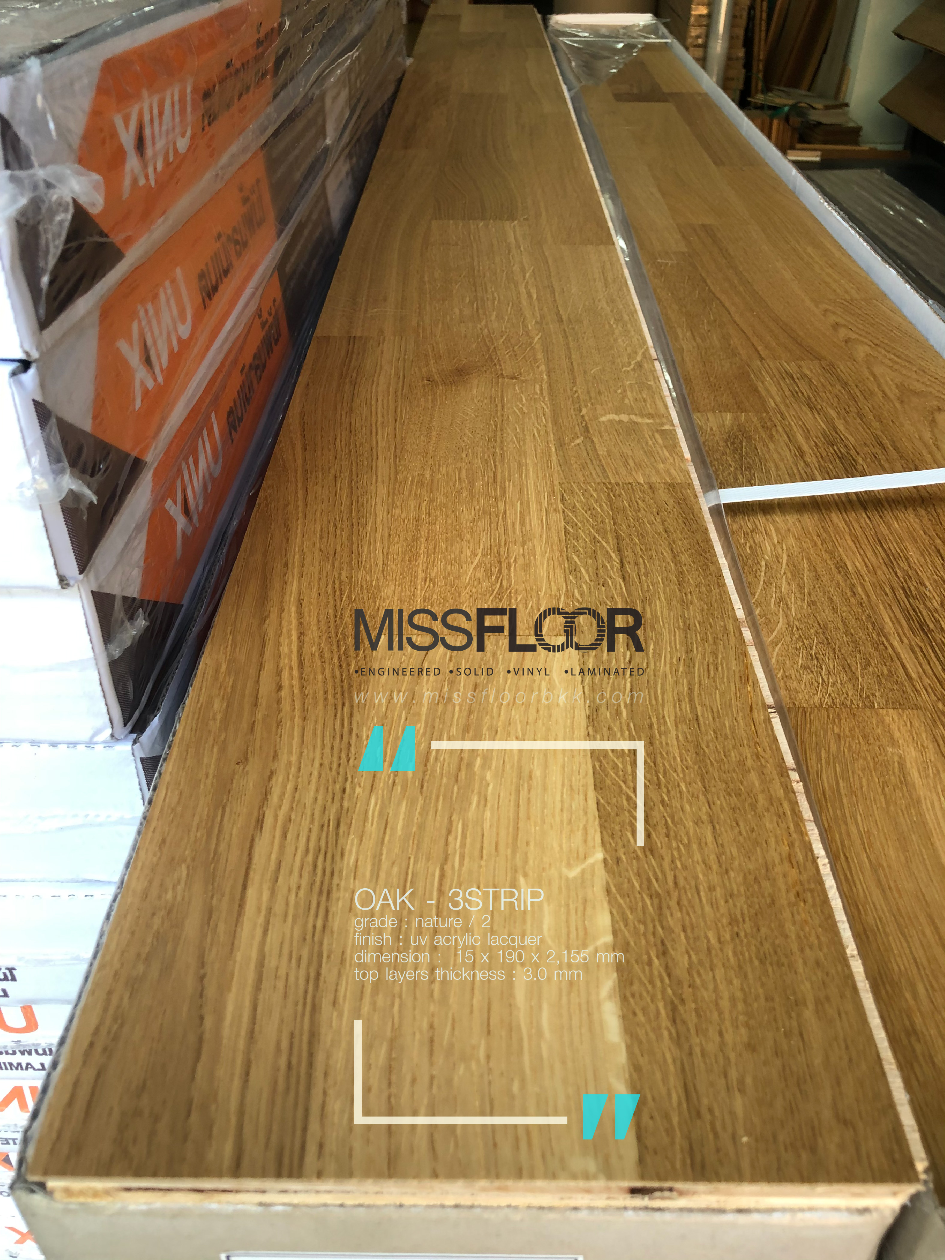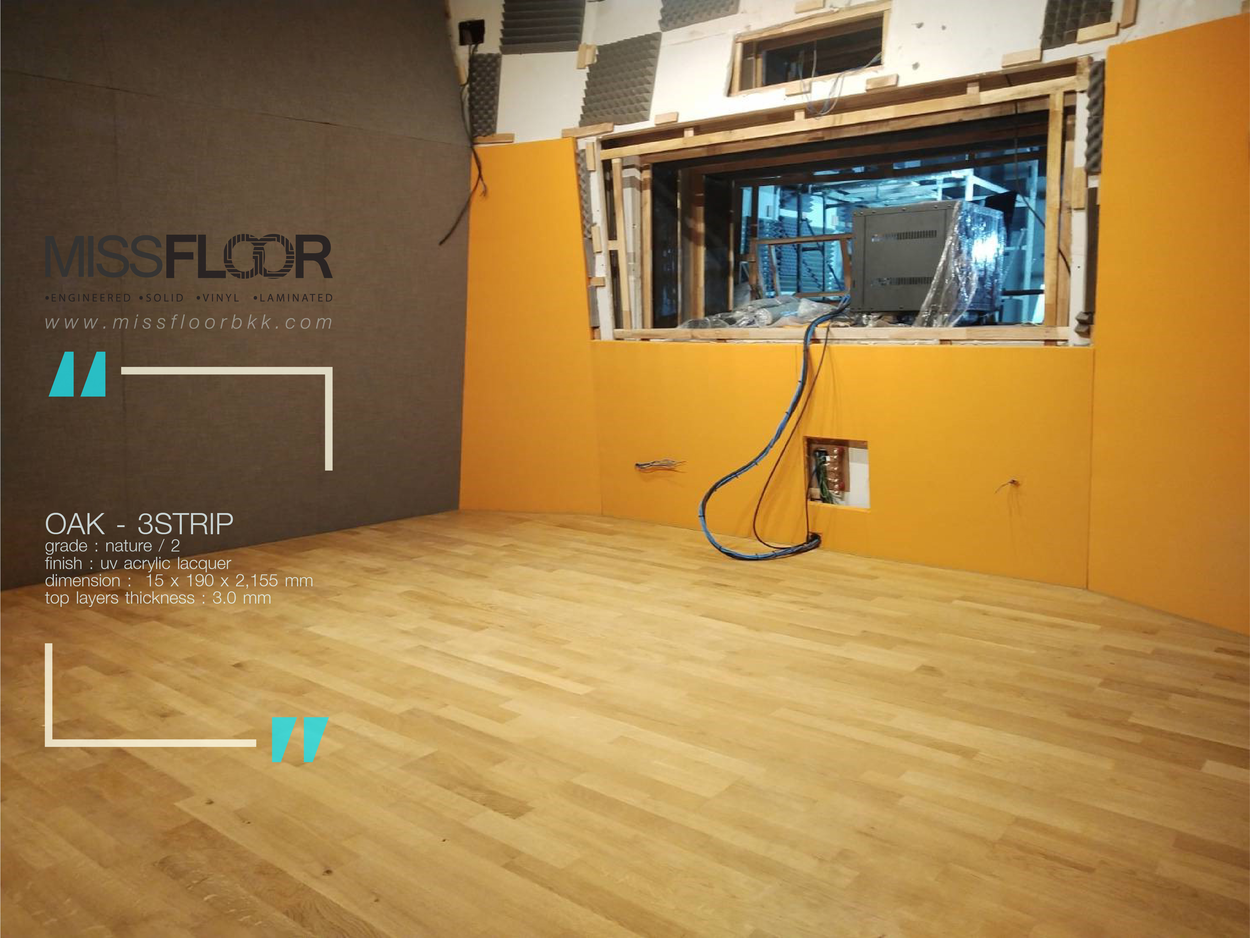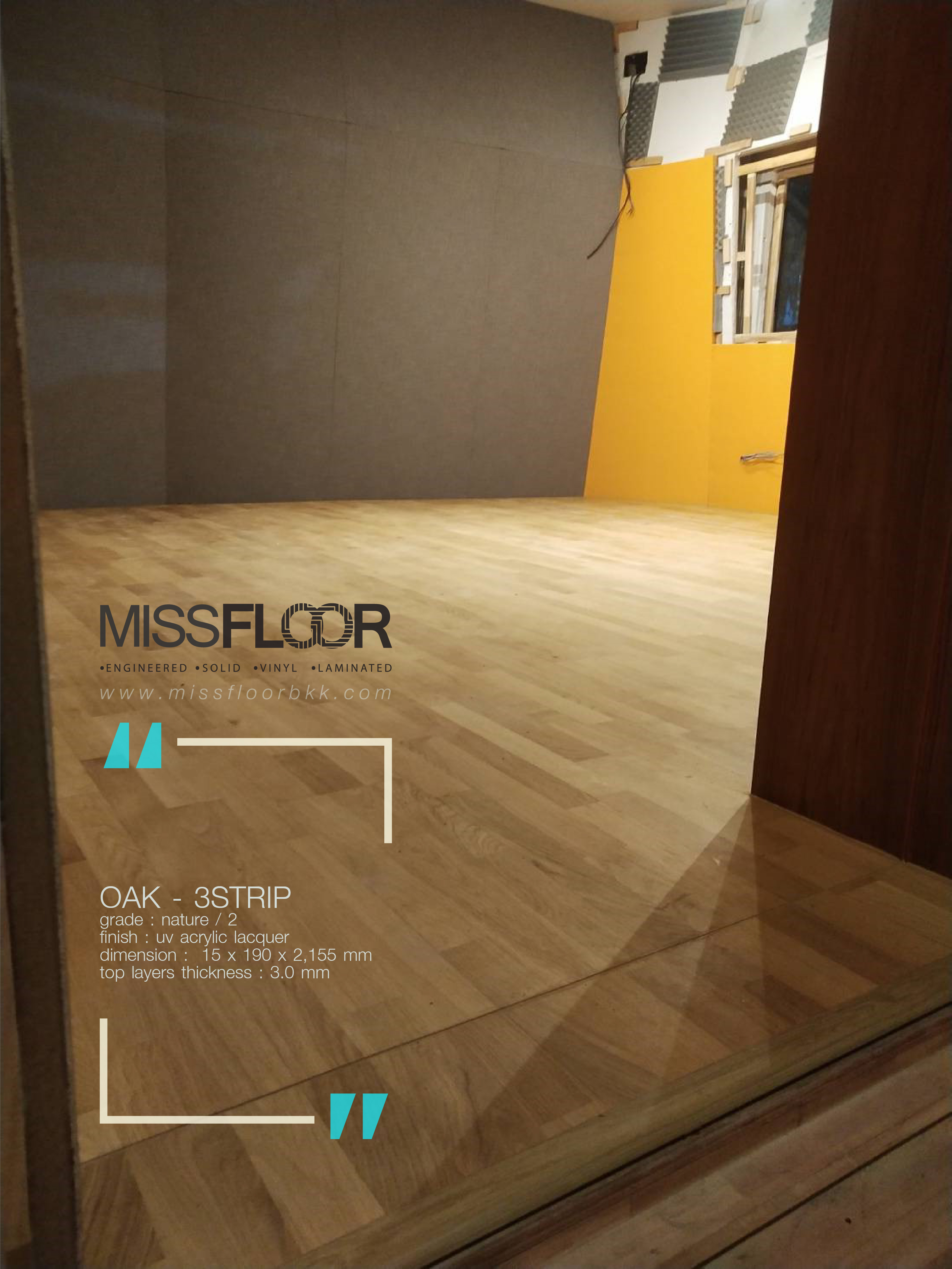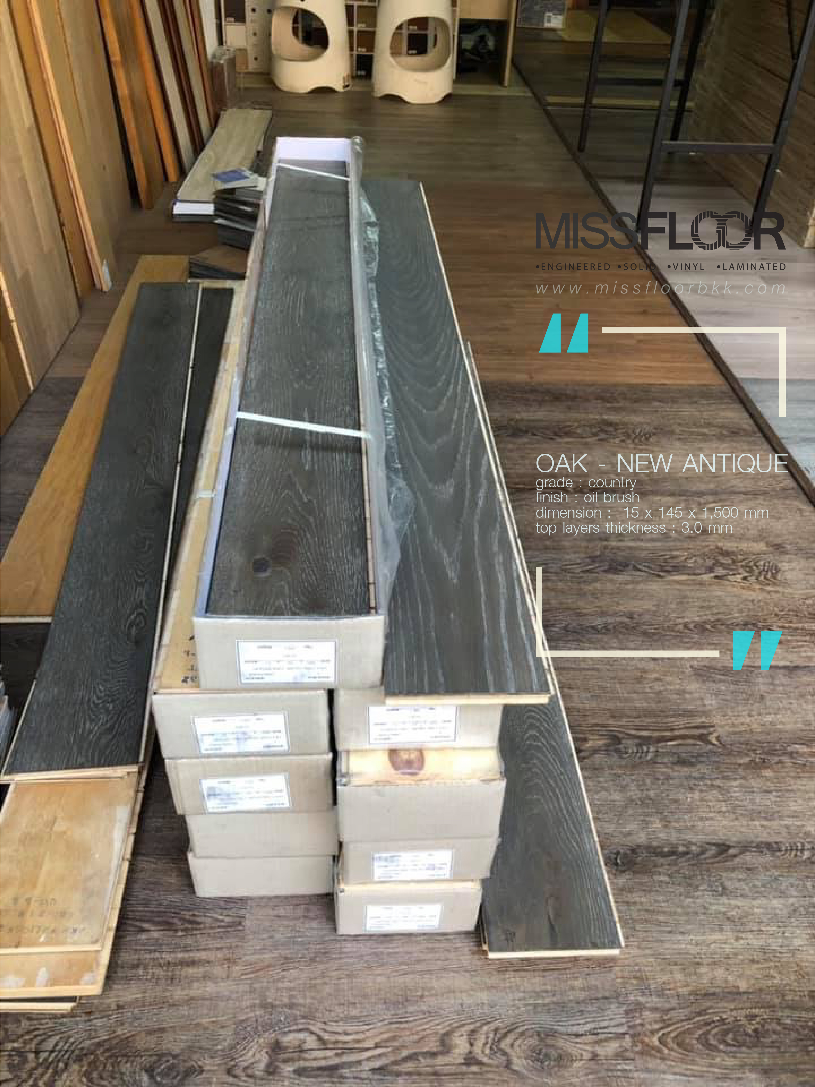 ผลงานติดตั้งพื้นไม้จริงเอ็นจิเนียร์ "ไม้โอ๊ค" สีธรรมชาติลายปาร์เก้ กับ ย้อมสีเทาเข้ม "กันตานา"
